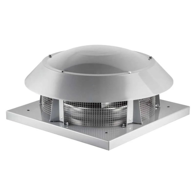 крышный вентилятор, максимальный расход воздуха 5 400 куб. м/ч, частота вращения 1 370 1/мин, максимальный располагаемый напор 542 Па, присоединительный размер 450х450 мм, диаметр рабочего колеса: 450 мм, материал корпуса: сталь, монтаж: горизонтальный, степень защиты: IP44